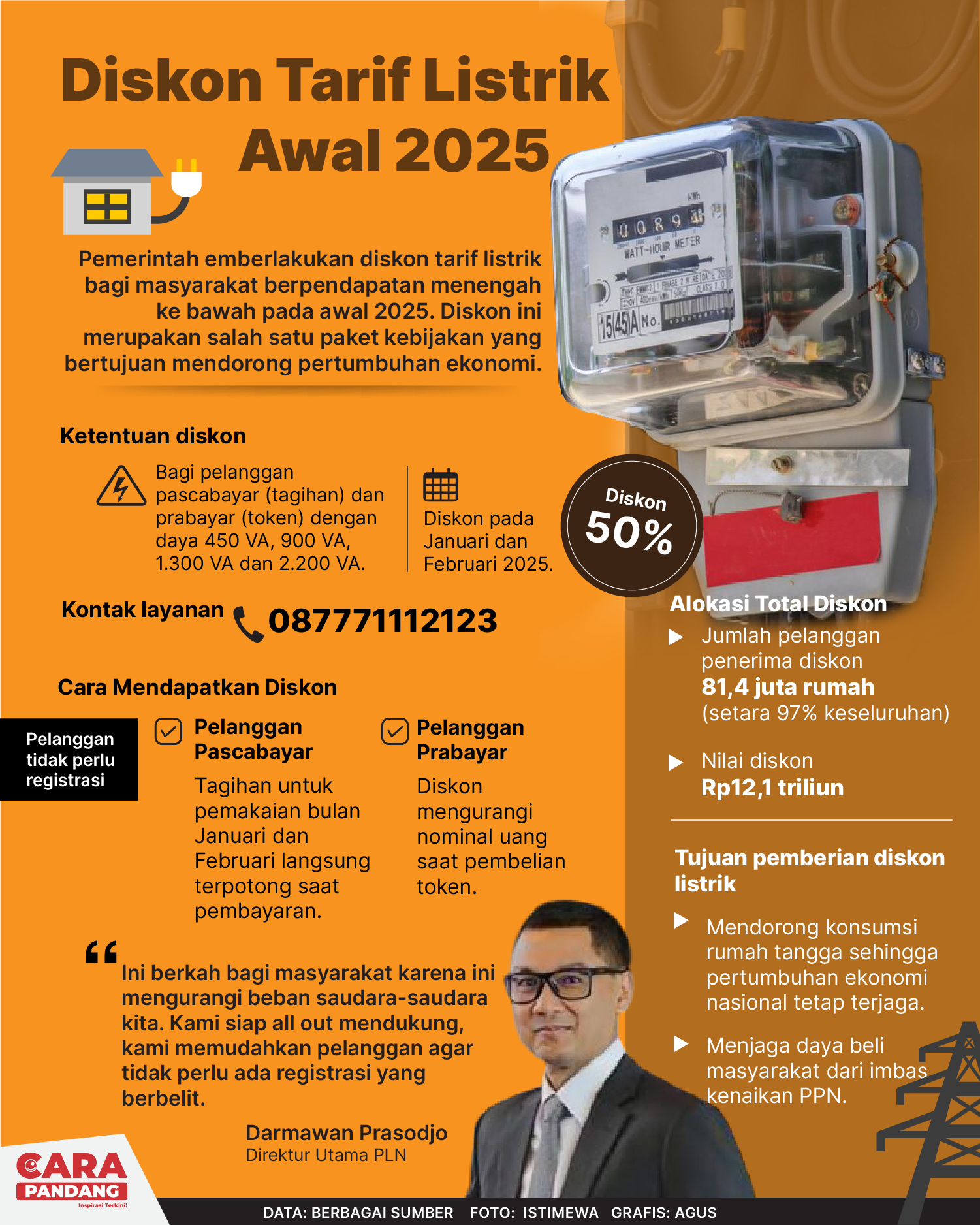 Beranda Infografis Diskon Tarif Listrik Awal 2025 Infografis Diskon Tarif Listrik Awal 2025 Diskon Tarif Listrik Awal 2025 Penulis Zoel Rachman - 19 Desember 2024 06:16 0 CARAPANDANG.COM - Diskon Tarif Listrik Awal 2025. Tags Diskon Listrik 2025 Berita Sebelumnya LIverpool ke Semifinal Piala Liga Bersama Arsenal dan Newcastle Berita Berikutnya Para Tahanan Pro-Palestina yang Mogok Makan di Inggris Hadapi Risiko Kematian LEAVE A REPLY Cancel reply Comment: Please enter your comment! Name:* Please enter your name here Email:* You have entered an incorrect email address! Please enter your email address here Website: Save my name, email, and website in this browser for the next time I comment. Berita Teratas Pemimpin Thailand dan Kamboja Berbicara via Telepon dengan Trump, Bahas Konflik Perbatasan Potret Timur Tengah: Badai Musim Dingin Tewaskan Setidaknya 14 Orang di Gaza yang Porak-Poranda akibat Perang Program Edukasi Bermain Bantu Anak Atasi Kecemasan Saat MRI Gie, Prabowo Presiden Sekarang Maruarar Sirait: Kita Samakan Data, Baru Relokasi Dan Bangun Rumah Korban Banjir Sumatera Berita Terkait Berita Terkait Distribusi Bantuan Banjir Sumatra Lewat Udara Maliq - 06 Desember 2025 14:16 Dampak Banjir Aceh, Sumut dan Sumbar Zoel Rachman - 05 Desember 2025 08:47 Daftar Dosa Korupsi Netanyahu Zoel Rachman - 04 Desember 2025 12:52 Kutipan Pidato Hari Guru Nasional 2025 Maliq - 28 November 2025 12:12