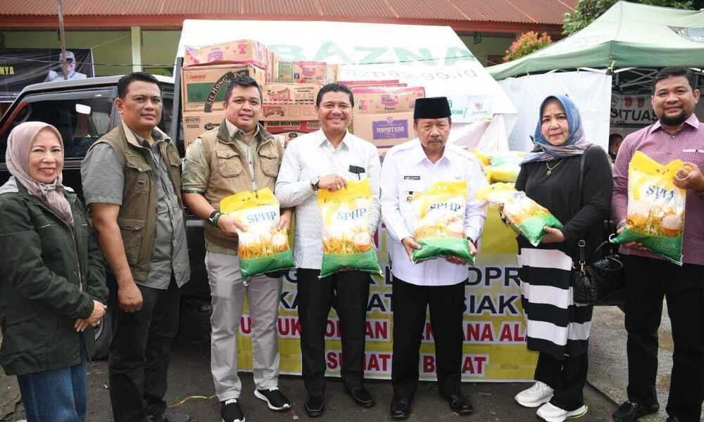AGAM, CARAPANDANG - DPRD Kabupaten Siak salurkan bantuan sembako kepada para korban bencana banjir bandang dan lahar dingin di Agam.