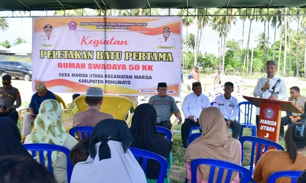Pembangunan 50 unit rumah yang bersumber dari DAK dan APBD Pohuwato ditandai dengan peletakan batu pertama oleh Bupati Pohuwato, Saipul A. Mbuinga bersama Kadis Perkim, Fadli Sanad, Kadis Perindagkop dan UKM, Ibrahim Kiraman, dan Camat Marisa, Mohamad Hun