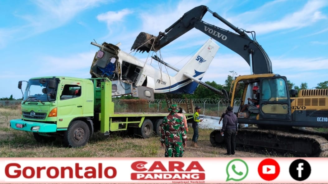 POHUWATO, CARAPANDANG - Empat hari pasca tragedi jatuhnya Pesawat Perintis SAM Air PK-SMH (DHC-6), proses evakuasi puing-puing pesawat terus berlangsung di Bandara Panua, Desa Imbodu, Kecamatan Randangan, Kabupaten Pohuwato.