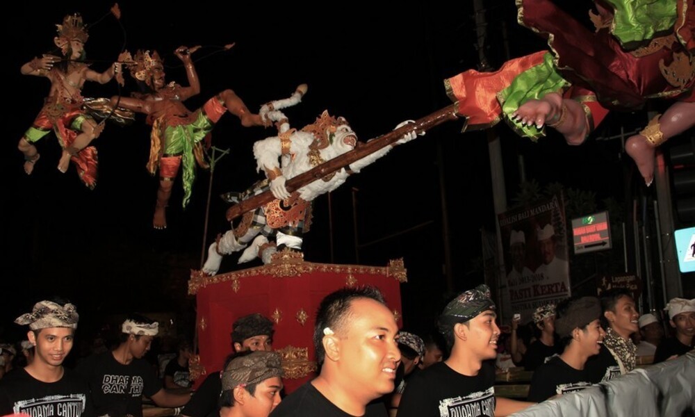 CARAPANDANG - Menjelang Hari Raya Nyepi, masyarakat Hindu menjalani sejumlah ritual khas yang pada hakikatnya merupakan upaya pensucian diri dan lingkungan sekitar. Pada 2-4 hari sebelum Nyepi, masyarakat menyucikan diri dan perangkat peribadahan di pura melalui Upacara Melasti. Sementara itu, satu hari sebelum Nyepi, dilakukan ritual Buta Yadnya (Bhuta Yajna). Buta Yadnya merupakan rangkaian upacara untuk menghalau kehadiran buta kala yang merupakan manifestasi unsur-unsur negatif dalam kehidupan manusia. Dalam rangkaian Buta Yadnya, terdapat tradisi pawai ogoh-ogoh yang kemudian berkembang menjadi festival tahunan yang semarak dan menjadi daya tarik pariwisata.