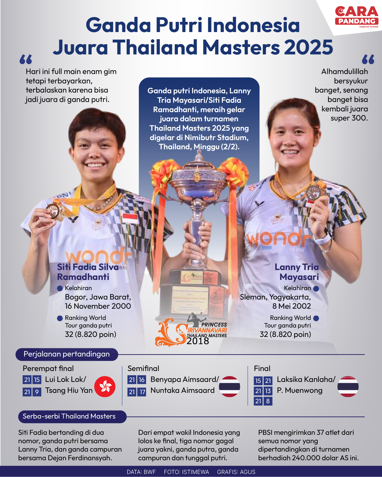 Beranda Infografis Ganda Putri Indonesia Juara Thailand Masters 2025 Infografis Ganda Putri Indonesia Juara Thailand Masters 2025 Penulis Amira Izzati - 04 Februari 2025 15:09 0 CARAPANDANG - Ganda Putri Indonesia Juara Thailand Masters 2025 Tags Berita Sebelumnya Donald Trump Tidak Menjamin Gencatan Senjata di Gaza Dapat Bertahan Berita Berikutnya TNI AU Kerahkan A400M untuk Antar Logistik ke Lokasi Bencana Aceh LEAVE A REPLY Cancel reply Comment: Please enter your comment! Name:* Please enter your name here Email:* You have entered an incorrect email address! Please enter your email address here Website: Save my name, email, and website in this browser for the next time I comment. Berita Teratas Pemimpin Thailand dan Kamboja Berbicara via Telepon dengan Trump, Bahas Konflik Perbatasan Potret Timur Tengah: Badai Musim Dingin Tewaskan Setidaknya 14 Orang di Gaza yang Porak-Poranda akibat Perang Program Edukasi Bermain Bantu Anak Atasi Kecemasan Saat MRI Gie, Prabowo Presiden Sekarang Maruarar Sirait: Kita Samakan Data, Baru Relokasi Dan Bangun Rumah Korban Banjir Sumatera Berita Terkait Berita Terkait Distribusi Bantuan Banjir Sumatra Lewat Udara Maliq - 06 Desember 2025 14:16 Dampak Banjir Aceh, Sumut dan Sumbar Zoel Rachman - 05 Desember 2025 08:47 Daftar Dosa Korupsi Netanyahu Zoel Rachman - 04 Desember 2025 12:52 Kutipan Pidato Hari Guru Nasional 2025 Maliq - 28 November 2025 12:12