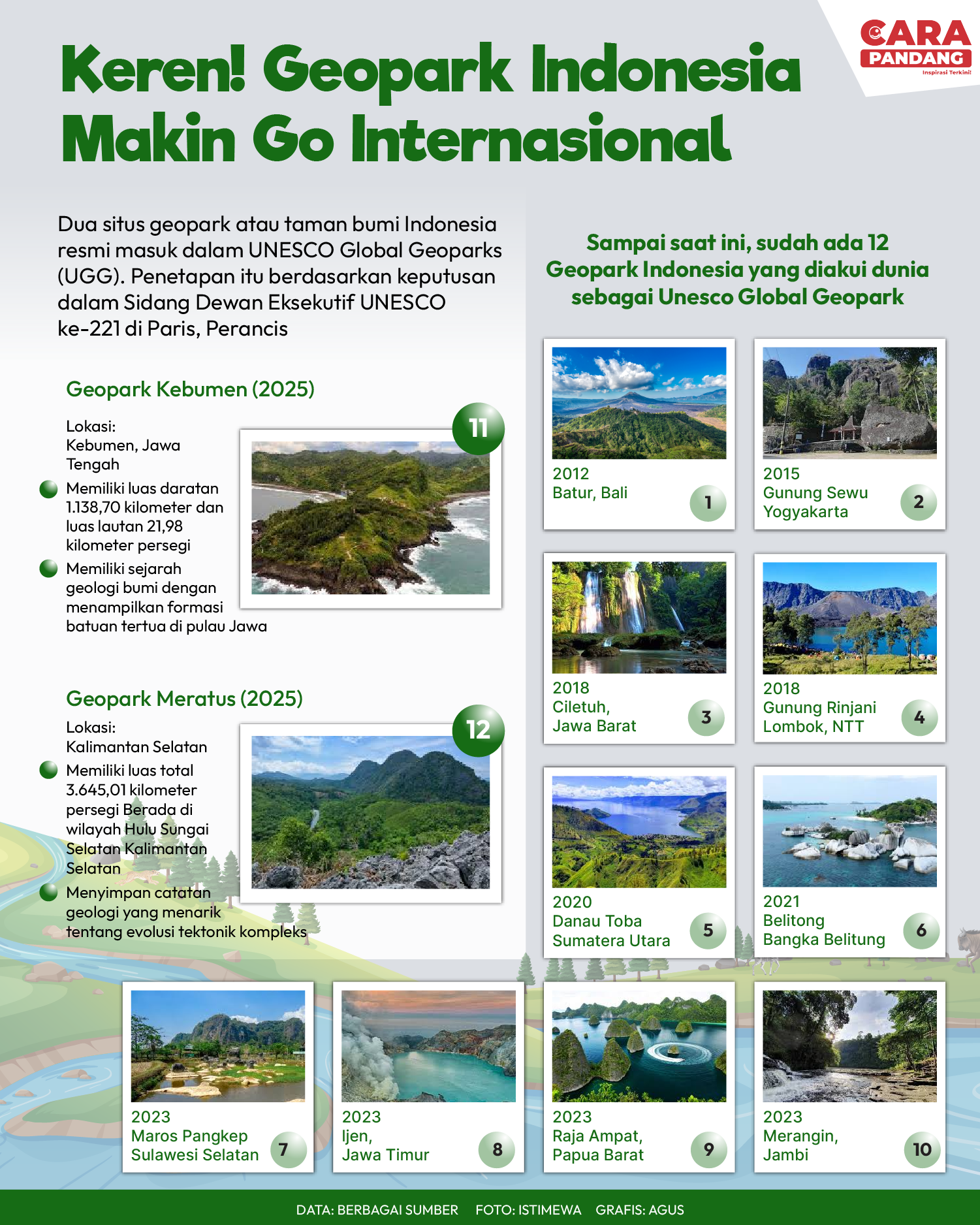 Beranda Infografis Geopark Indonesia Makin Go Internasional Infografis Geopark Indonesia Makin Go Internasional Penulis Amira Izzati - 27 April 2025 08:21 0 CARAPANDANG - Geopark Indonesia Makin Go Internasional Tags Berita Sebelumnya Bunda Iffet Bimbim Slank Tutup Usia Berita Berikutnya Para Tahanan Pro-Palestina yang Mogok Makan di Inggris Hadapi Risiko Kematian LEAVE A REPLY Cancel reply Comment: Please enter your comment! Name:* Please enter your name here Email:* You have entered an incorrect email address! Please enter your email address here Website: Save my name, email, and website in this browser for the next time I comment. Berita Teratas Pemimpin Thailand dan Kamboja Berbicara via Telepon dengan Trump, Bahas Konflik Perbatasan Program Edukasi Bermain Bantu Anak Atasi Kecemasan Saat MRI Potret Timur Tengah: Badai Musim Dingin Tewaskan Setidaknya 14 Orang di Gaza yang Porak-Poranda akibat Perang Gie, Prabowo Presiden Sekarang Maruarar Sirait: Kita Samakan Data, Baru Relokasi Dan Bangun Rumah Korban Banjir Sumatera Berita Terkait Berita Terkait Distribusi Bantuan Banjir Sumatra Lewat Udara Maliq - 06 Desember 2025 14:16 Dampak Banjir Aceh, Sumut dan Sumbar Zoel Rachman - 05 Desember 2025 08:47 Daftar Dosa Korupsi Netanyahu Zoel Rachman - 04 Desember 2025 12:52 Kutipan Pidato Hari Guru Nasional 2025 Maliq - 28 November 2025 12:12
