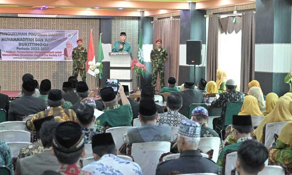 SUMBAR, CARAPANDANG.COM -Gubernur Sumatera Barat, Mahyeldi Ansharullah menghadiri pengukuhan Pimpinan Daerah Muhammadiyah (PDM) dan Pimpinan Daerah Aisyiyah (PDA) Kota Bukittinggi Periode 2023-2027 di di Aula Universitas Muhammadiyah Sumatera Barat (UM Sumbar) Bukittinggi, Sabtu, (26/08/2023).