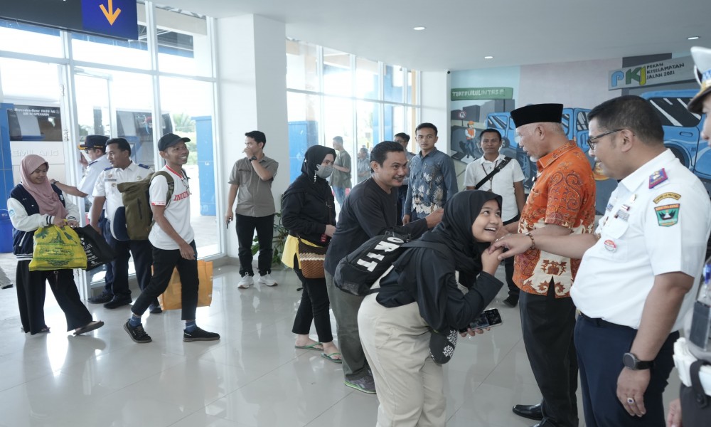 Gubernur saat menyambut kedatangan rombongan pemudik tersebut di Terminal Tipe A Anak Air Kota Padang, Senin (08/04/2024).