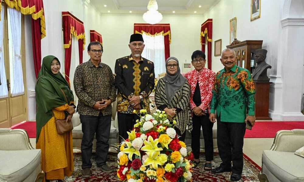 SUMBAR, CARAPANDANG.COM - Gubernur Sumatera Barat Mahyeldi Ansharullah, menerima audiensi Pimpinan Sanggar Tari Sofyani, Soni Drestiana dan jajarannya di Istana Gubernuran, Minggu (7/5/2023). Dalam pertemuan tersebut, Soni meminta dukungan Gubernur, karena sanggarnya diundang oleh panitia penyelenggara untuk mengisi acara Festival Montoire di Perancis, mewakili Indonesia.