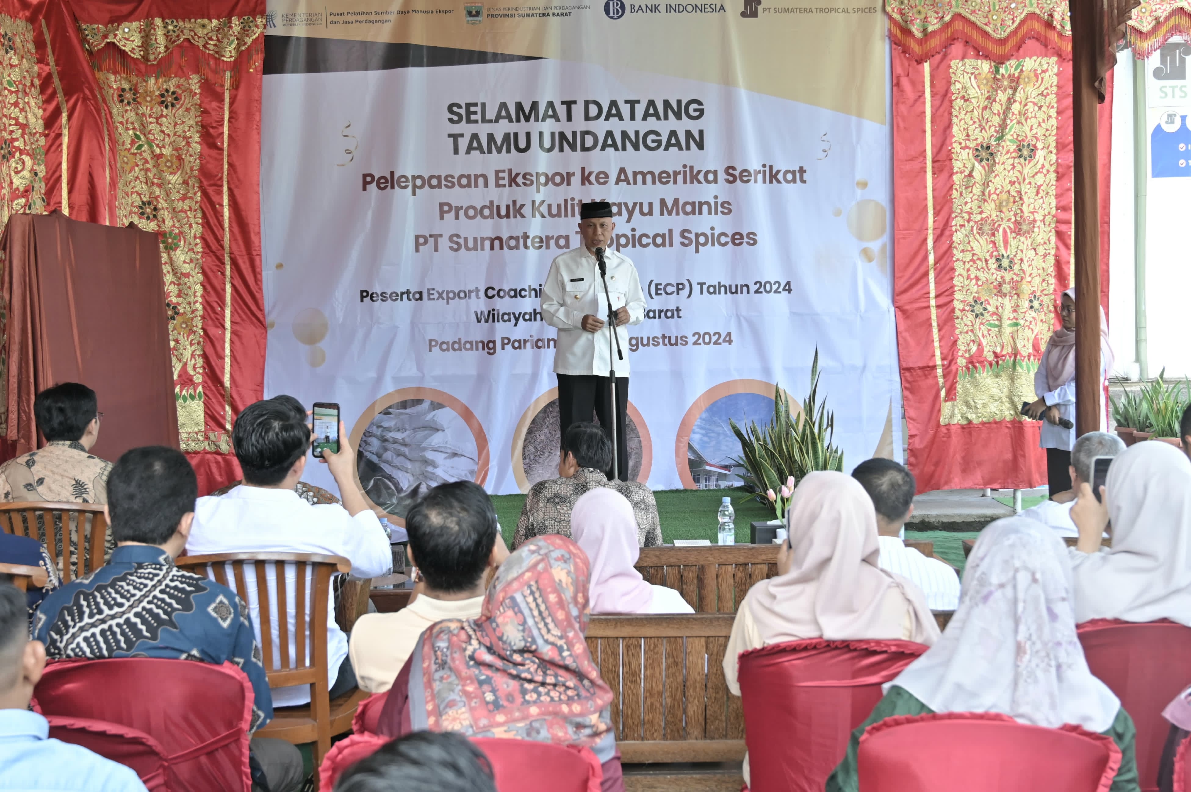 CARAPANDANG - Gubernur Sumatera Barat, Mahyeldi Ansharullah Datuak Marajo melepas kegiatan ekspor produk kulit manis oleh PT Sumatera Tropical Spices (STS) menuju Amerika Serikat, Rabu (21/08/2024). Ia menegaskan, Pemprov Sumbar terus berkomitmen dalam meningkatkan luas area tanam serta kualitas produk unggulan Sumbar untuk memenuhi kebutuhan pasar dunia.