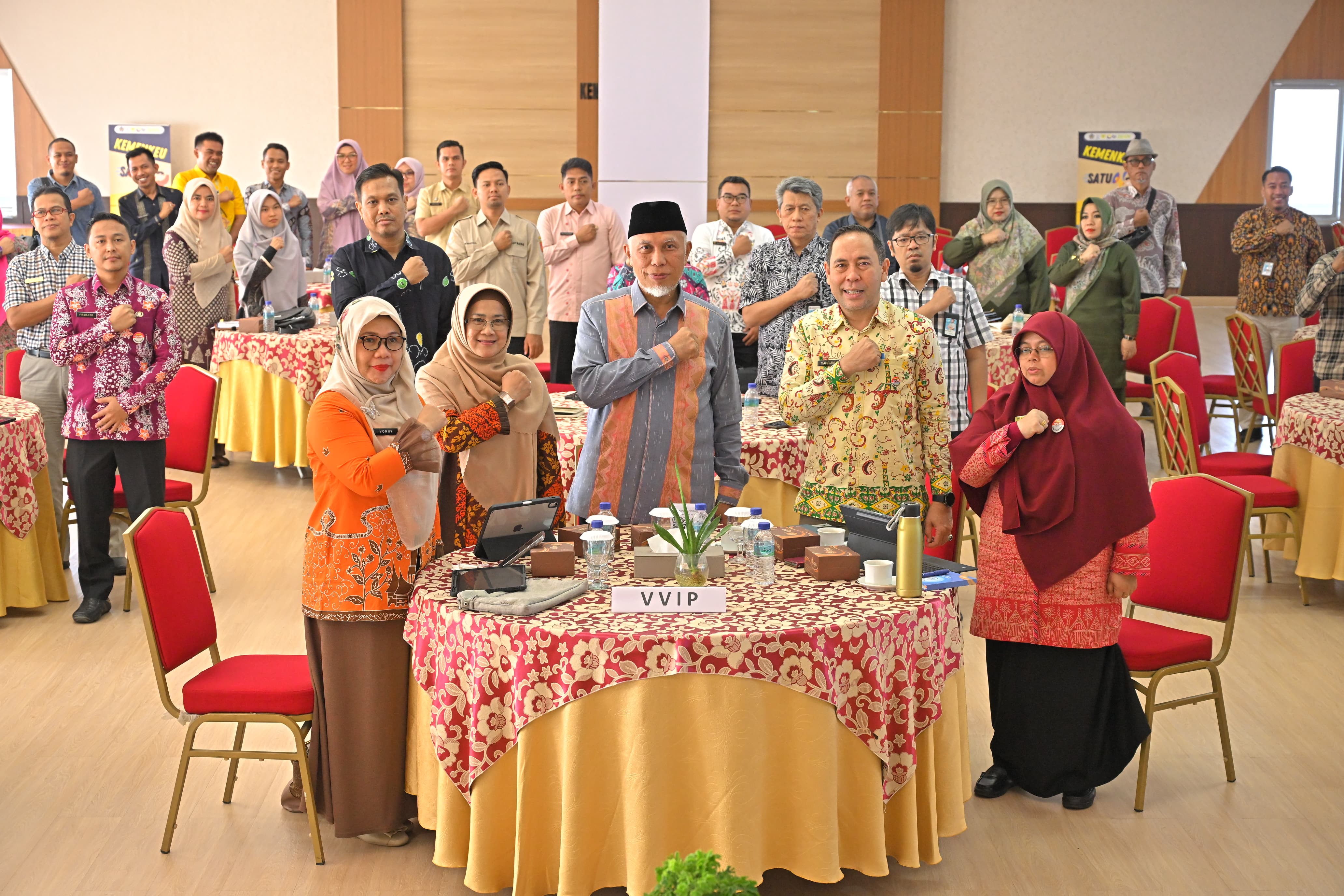 Gubernur saat menghadiri Pertemuan Forum Komunikasi Nagari (FKN) Tahun 2025 yang berlangsung secara hybrid di Aula Kantor Wilayah (Kanwil) DJPB Sumbar, Kamis (06/02/2025).