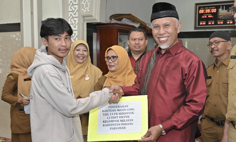 "Hari ini kita menyalurkan bantuan BPJS Ketenagakerjaan untuk 300 nelayan di Padang Pariaman, yang telah memiliki Kartu Usaha Pelaku Perikanan (Kusuka). Sebab kita menyadari, bahwa bekerja sebagai nelayan risikonya tinggi, sehingga jaminan kesehatan dan ketenagkerjaannya sangat penting," ucap Gubernur saat penyaluran bantuan di Nagari Pungguang Kasiak, Lubuak Aluang.