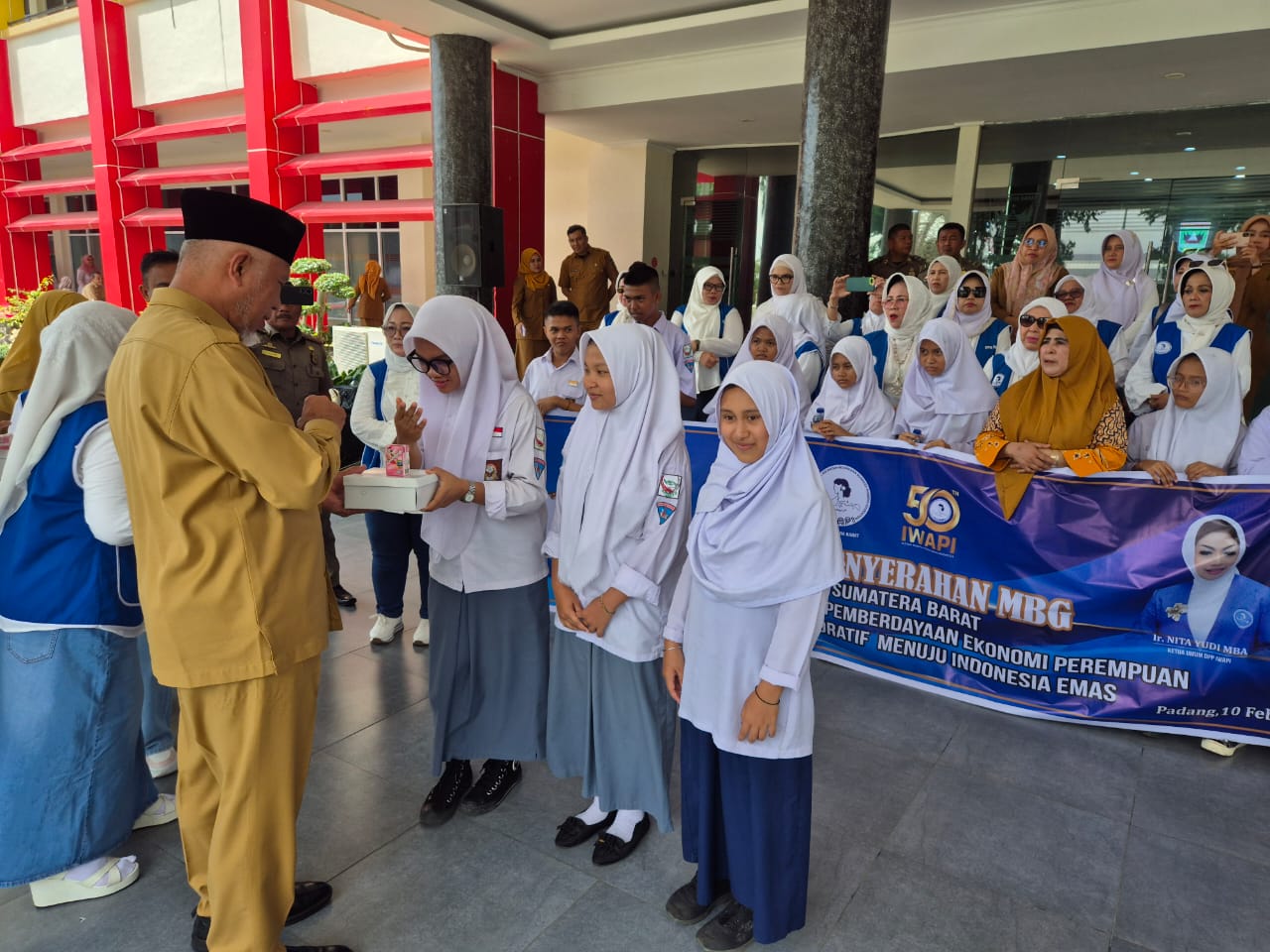 "Alhamdulillah atas suport dari IWAPI, hari ini kita bisa membagikan sebanyak 2.307 box MBG untuk siswa-siswi SMK Dhuafa dan Madrasah Tarbiyah Islamiyah Batang Kabung," ujar Gubernur Mahyeldi.