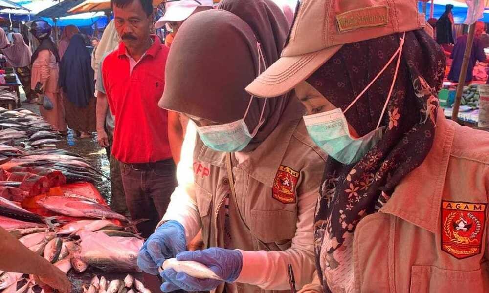 AGAM, CARAPANDANG - Dalam rangka memperingati Hari Keamanan Pangan Sedunia yang jatuh pada tanggal 7 Juni 2024, Dinas Ketahanan Pangan dan Perikanan Kabupaten Agam melalui OKKPD (Otoritas Kompeten Keamanan Pangan Daerah) turun ke lapangan untuk melakukan pengambilan dan pengujian sampel pangan segar di Pasar Lama Lubuk Basung pada Rabu, (12/6).