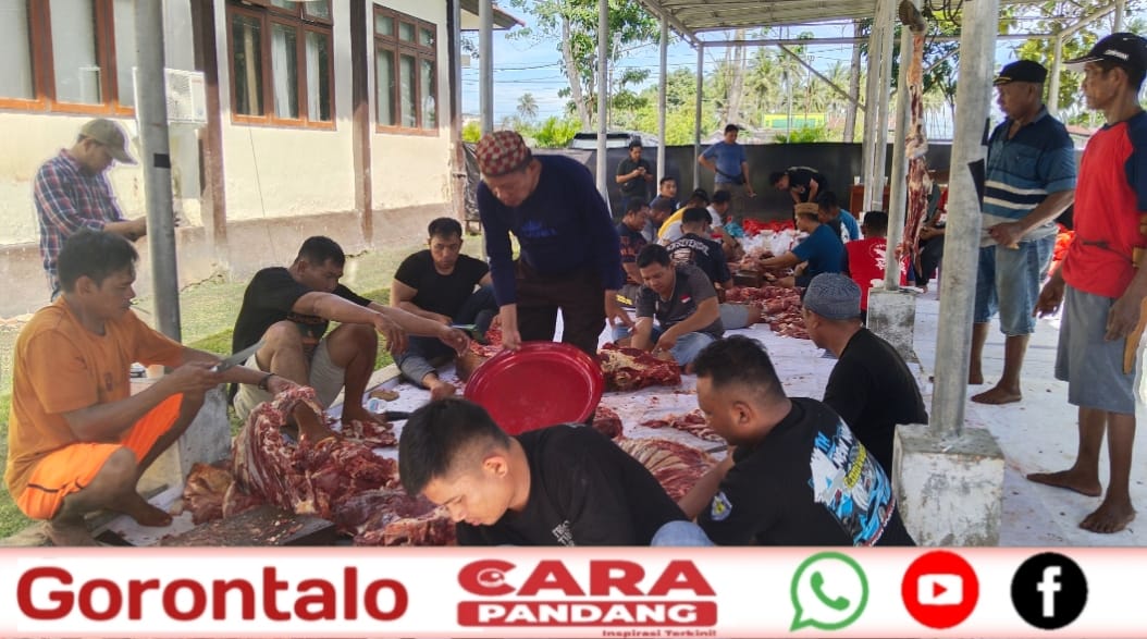 POHUWATO, CARAPANDANG - Di momen Hari Raya Idul Adha 1446 Hijriah, Polres Pohuwato menunjukkan kepeduliannya terhadap masyarakat dengan menyembelih sebanyak 12 ekor sapi.