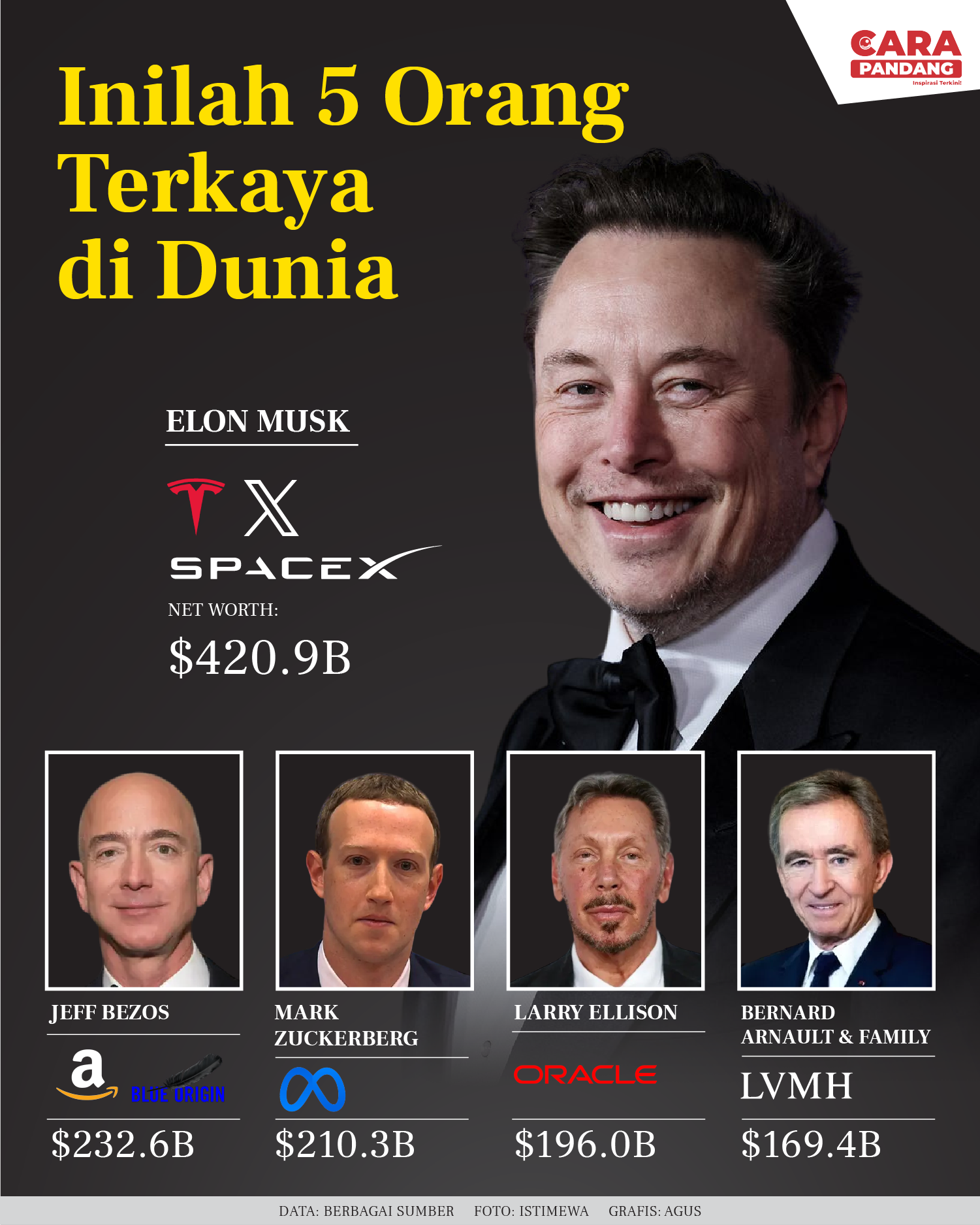 Beranda Infografis Inilah 5 Orang Terkaya di Dunia Infografis Inilah 5 Orang Terkaya di Dunia Penulis Amira Izzati - 22 Januari 2025 11:15 0 CARAPANDANG - Inilah 5 Orang Terkaya di Dunia Tags Berita Sebelumnya Penyerahan Surat Perintah Plt Pejabat di Bapenda Kabupaten Solok Berita Berikutnya PIP Instrumen Penting Wujudkan Pendidikan Bermutu untuk Semua LEAVE A REPLY Cancel reply Comment: Please enter your comment! Name:* Please enter your name here Email:* You have entered an incorrect email address! Please enter your email address here Website: Save my name, email, and website in this browser for the next time I comment. Berita Teratas Pemimpin Thailand dan Kamboja Berbicara via Telepon dengan Trump, Bahas Konflik Perbatasan Potret Timur Tengah: Badai Musim Dingin Tewaskan Setidaknya 14 Orang di Gaza yang Porak-Poranda akibat Perang Program Edukasi Bermain Bantu Anak Atasi Kecemasan Saat MRI Gie, Prabowo Presiden Sekarang Masakan Italia Diakui sebagai Warisan Budaya Takbenda UNESCO Berita Terkait Berita Terkait Distribusi Bantuan Banjir Sumatra Lewat Udara Maliq - 06 Desember 2025 14:16 Dampak Banjir Aceh, Sumut dan Sumbar Zoel Rachman - 05 Desember 2025 08:47 Daftar Dosa Korupsi Netanyahu Zoel Rachman - 04 Desember 2025 12:52 Kutipan Pidato Hari Guru Nasional 2025 Maliq - 28 November 2025 12:12