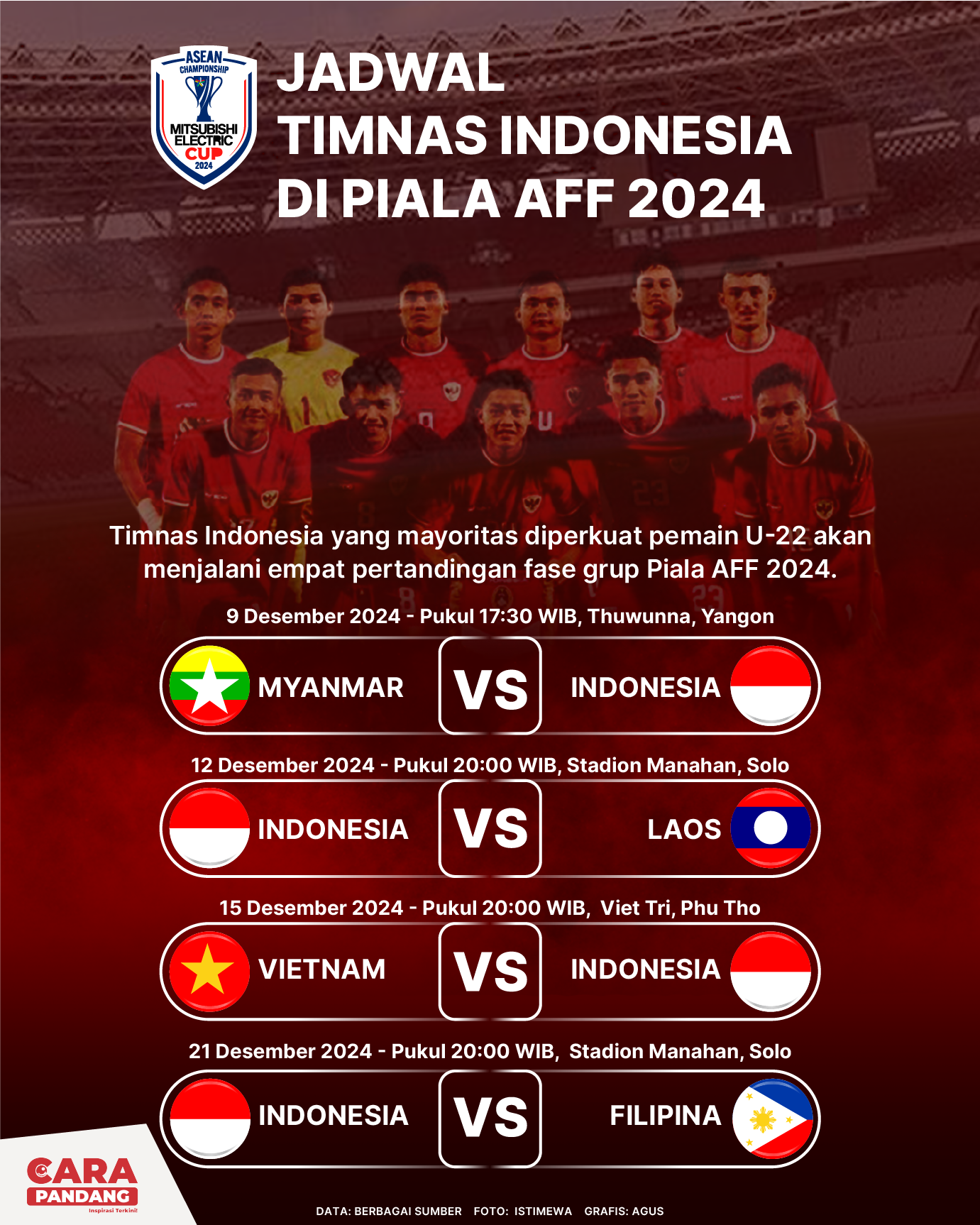 Beranda Infografis Jadwal Timnas Indonesia di Piala AFF 2024 Infografis Jadwal Timnas Indonesia di Piala AFF 2024 Penulis Jazlan Mumtaz - 01 Desember 2024 23:07 0 CARAPANDANG.COM - Jadwal Timnas Indonesia di Piala AFF 2024 Tags AFF 2024 Berita Sebelumnya Hasto: PDIP Menang Pilkada di 14 Provinsi dan 247 Kabupaten/kota Berita Berikutnya Para Tahanan Pro-Palestina yang Mogok Makan di Inggris Hadapi Risiko Kematian LEAVE A REPLY Cancel reply Comment: Please enter your comment! Name:* Please enter your name here Email:* You have entered an incorrect email address! Please enter your email address here Website: Save my name, email, and website in this browser for the next time I comment. Berita Teratas Pemimpin Thailand dan Kamboja Berbicara via Telepon dengan Trump, Bahas Konflik Perbatasan Potret Timur Tengah: Badai Musim Dingin Tewaskan Setidaknya 14 Orang di Gaza yang Porak-Poranda akibat Perang Program Edukasi Bermain Bantu Anak Atasi Kecemasan Saat MRI Gie, Prabowo Presiden Sekarang Maruarar Sirait: Kita Samakan Data, Baru Relokasi Dan Bangun Rumah Korban Banjir Sumatera Berita Terkait Berita Terkait Distribusi Bantuan Banjir Sumatra Lewat Udara Maliq - 06 Desember 2025 14:16 Dampak Banjir Aceh, Sumut dan Sumbar Zoel Rachman - 05 Desember 2025 08:47 Daftar Dosa Korupsi Netanyahu Zoel Rachman - 04 Desember 2025 12:52 Kutipan Pidato Hari Guru Nasional 2025 Maliq - 28 November 2025 12:12
