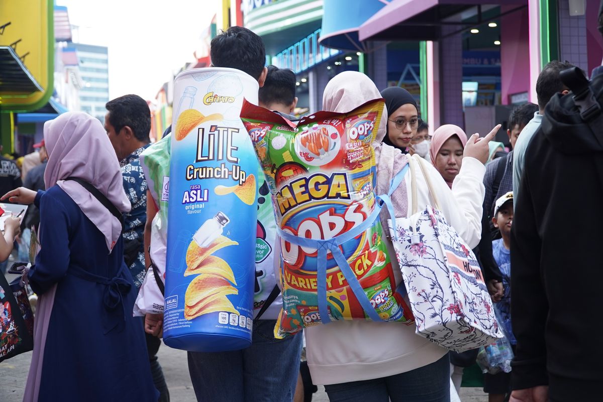 Jajanan di PRJ 2025 tidak hanya menarik dari segi bentuk, tapi juga memiliki ukuran kemasan yang besar. Banyak tenant menawarkan makanan dalam ukuran jumbo yang menarik perhatian.