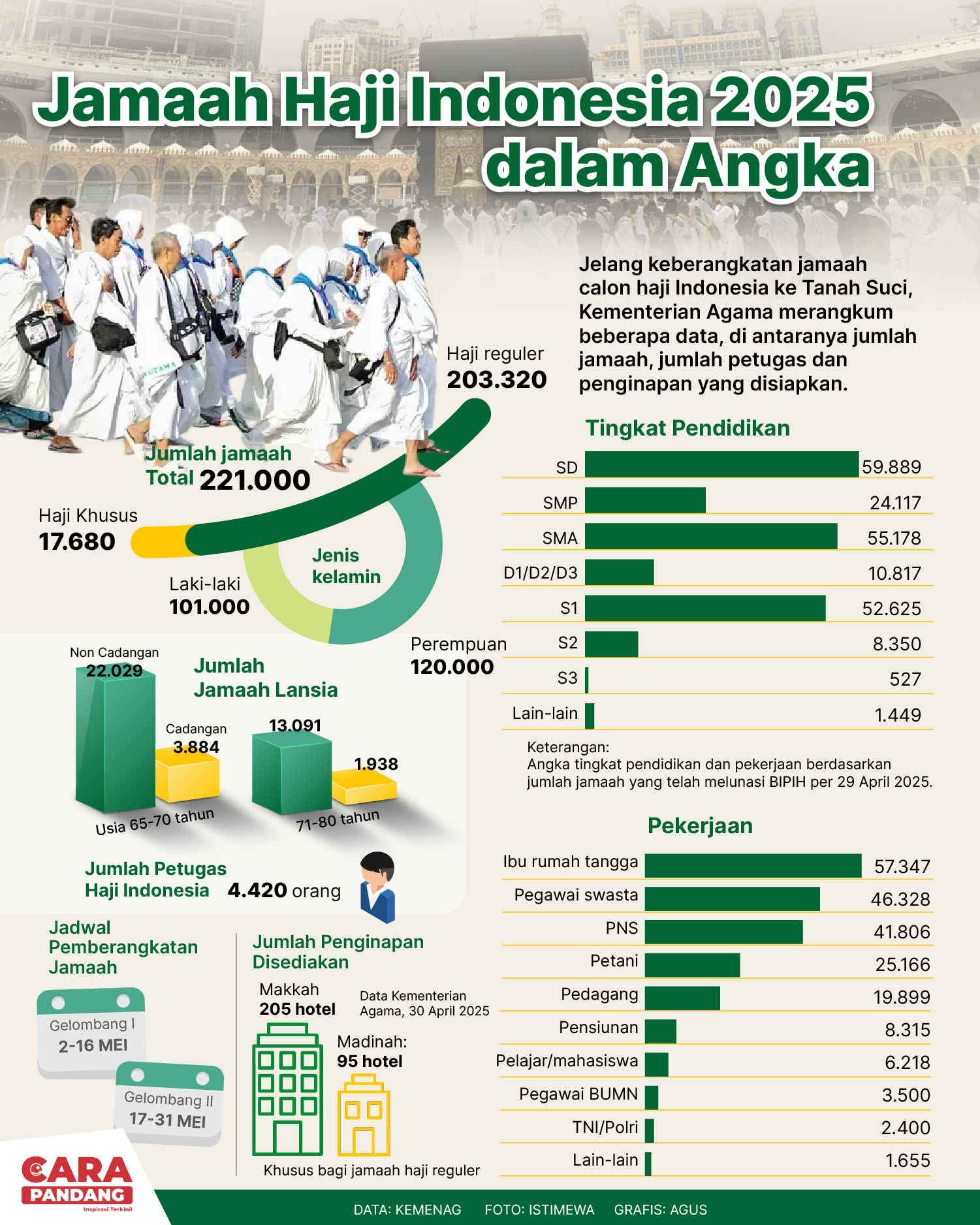 Beranda Infografis Jamaah Haji Indonesia 2025 dalam Angka Infografis Jamaah Haji Indonesia 2025 dalam Angka Penulis Amira Izzati - 03 Mei 2025 07:08 0 CARAPANDANG - Jamaah Haji Indonesia 2025 dalam Angka Tags Berita Sebelumnya AS Kembali Ramai Efek Rencana Trump Pangkas Anggaran Belanja Rp2.678 T Berita Berikutnya PIP Instrumen Penting Wujudkan Pendidikan Bermutu untuk Semua LEAVE A REPLY Cancel reply Comment: Please enter your comment! Name:* Please enter your name here Email:* You have entered an incorrect email address! Please enter your email address here Website: Save my name, email, and website in this browser for the next time I comment. Berita Teratas Pemimpin Thailand dan Kamboja Berbicara via Telepon dengan Trump, Bahas Konflik Perbatasan Potret Timur Tengah: Badai Musim Dingin Tewaskan Setidaknya 14 Orang di Gaza yang Porak-Poranda akibat Perang Program Edukasi Bermain Bantu Anak Atasi Kecemasan Saat MRI Gie, Prabowo Presiden Sekarang Masakan Italia Diakui sebagai Warisan Budaya Takbenda UNESCO Berita Terkait Berita Terkait Distribusi Bantuan Banjir Sumatra Lewat Udara Maliq - 06 Desember 2025 14:16 Dampak Banjir Aceh, Sumut dan Sumbar Zoel Rachman - 05 Desember 2025 08:47 Daftar Dosa Korupsi Netanyahu Zoel Rachman - 04 Desember 2025 12:52 Kutipan Pidato Hari Guru Nasional 2025 Maliq - 28 November 2025 12:12