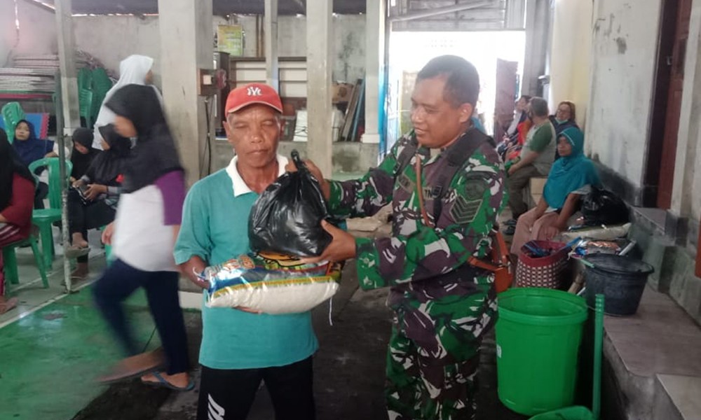 Selain melibatkan aparat Babinsa, bagi-bagi sembako itu juga turut melibatkan aparat Bhabinkamtibmas dan perangkat Desa setempat.