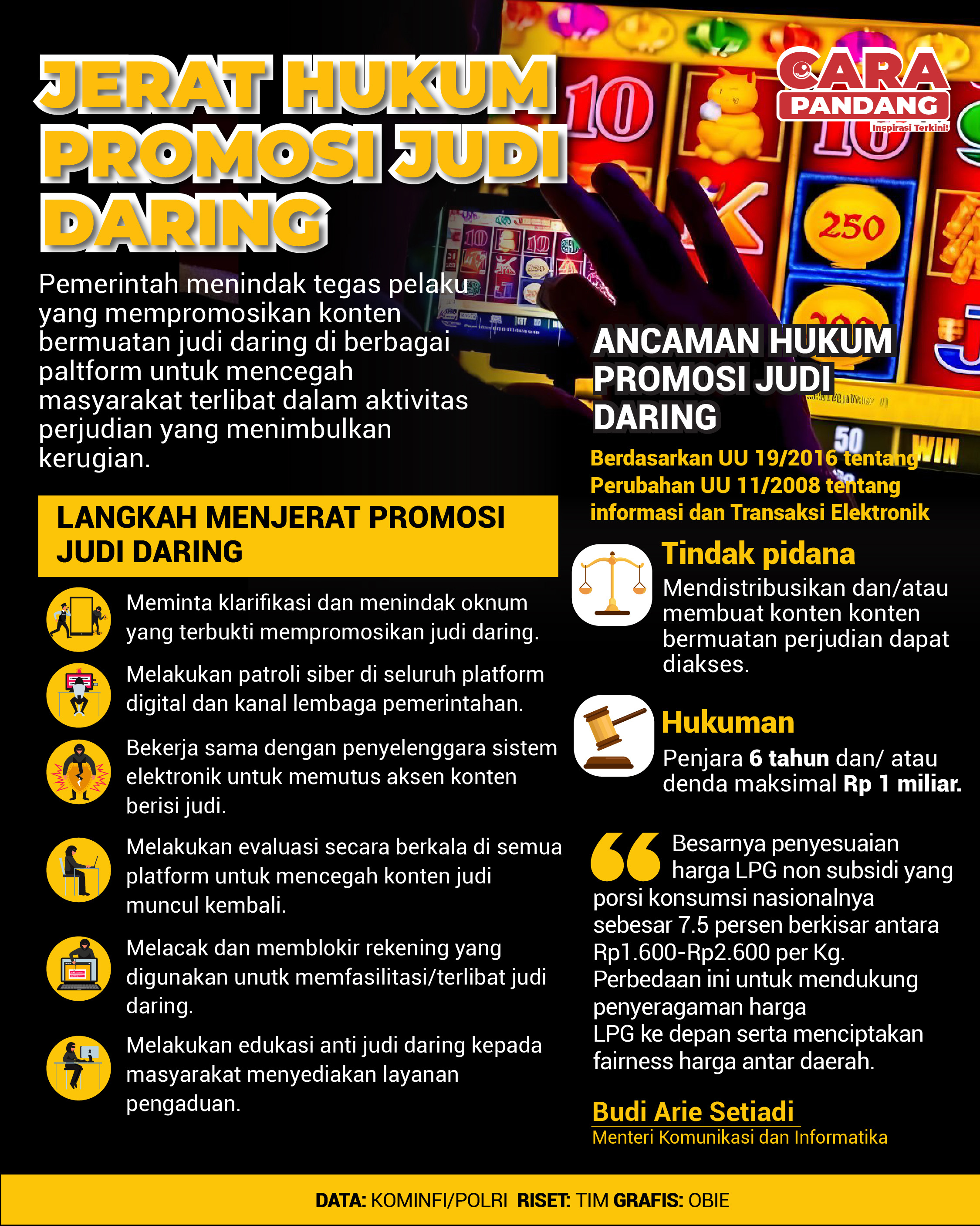 CARAPANDANG - Pemerintah menindak tegas pelaku yang mempromosikan konten bermuatan judi daring di berbagai paltform untuk mencegah masyarakat terlibat dalam aktivitas perjudian yang menimbulkan kerugian.