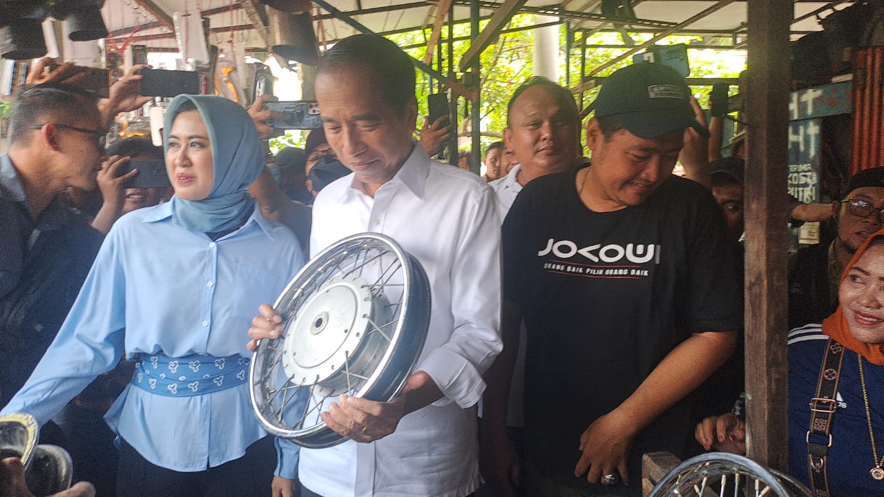 Kunjungan Jokowi tidak sendiri, dia didampingi oleh pasangan calon wali kota-wakil wali kota Surakarta nomor urut 02 Respati Ardi-Astrid Widayani.