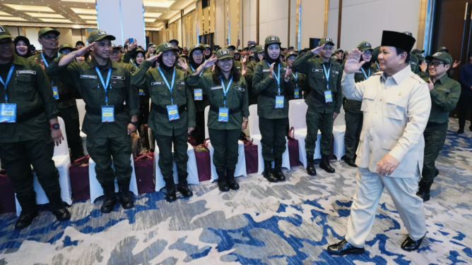 CARAPANDANG - Presiden Prabowo Subianto memberikan pesan untuk para siswa Sekolah Rakyat saat acara Pembekalan Guru dan Kepala Sekolah Rakyat di JIExpo Kemayoran, Jakarta, Jumat (22/8/2025). Ia meminta para siswa tak rendah diri.