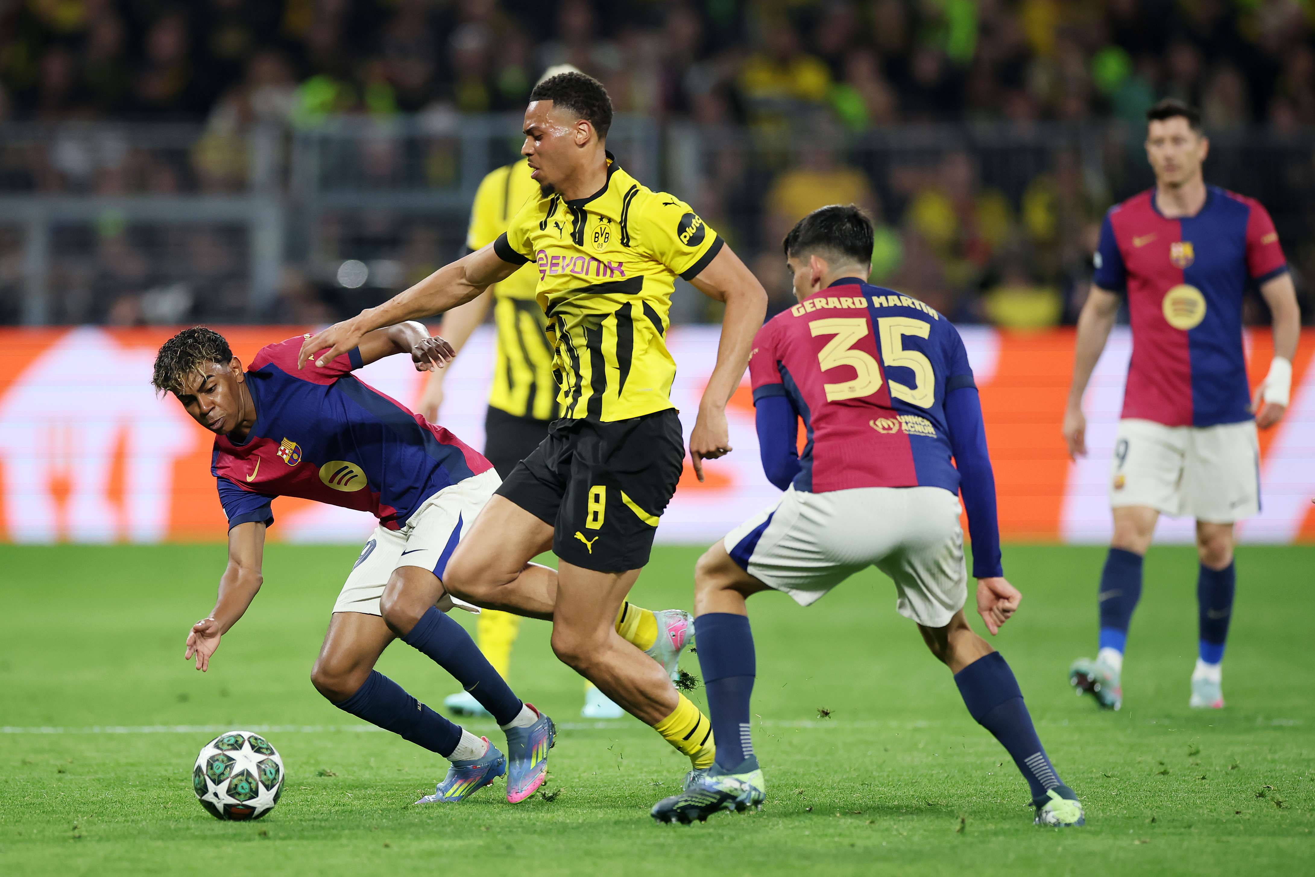 Tiga gol Serhou Guirassy tidak cukup membawa Dortmund ke semifinal, sedangkan Barcelona mencetak gol lewat bunuh diri Ramy Bensebaini.