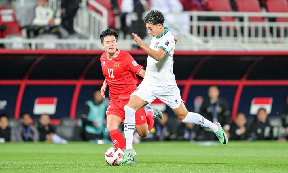 Timnas Indonesia mendapatkan penalti pada menit 41' setelah Rafael Struick ditarik oleh Nguyen Tanh Binh. Asnawi Mangkualam Bahar berhasil mengeksekusi tendangan 12 pas dengan baik. Skor 1-0 untuk Indonesia bertahan sampai turun minum.