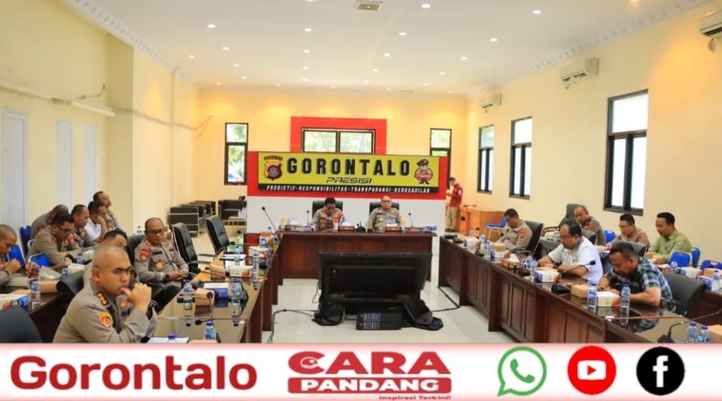 POHUWATO, CARAPANDANG - Kapolda Gorontalo Irjen Pol. Drs. Pudji Prasetijanto Hadi, M.H., hadiri kegiatan Grand Entry Meeting (pertemuan besar) yang diselenggarakan oleh Badan Pemeriksa Keuangan Republik Indonesia (BPKRI) melalui Zoom di Aula Bid Dokkes Polda Gorontalo, Selasa, 23 Januari 2025.