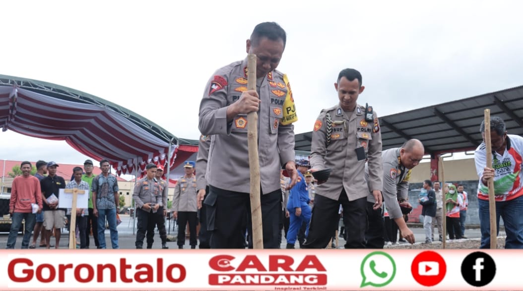 Kapolda Gorontalo didampingi Waka Polda bersama seluruh Pejabat Utama menghadiri kegiatan penanaman dalam rangka mendukung Program Prioritas 100 Hari Asta Cita Presiden RI bidang ketahanan pangan.
