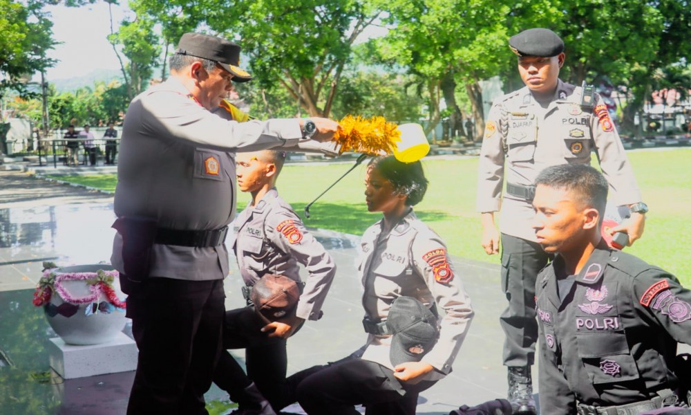POHUWATO, CARAPANDANG.COM - Polda Gorontalo, Kepala Kepolisian Daerah Gorontalo Irjen Pol Drs. Angesta Romano Yoyol, M.M memimpin langsung Upacara Tradisi Penyambutan Bintara Polri Tugas Umum, Bintara Brimob serta Bintara Polairud dan Tamtama Polri lulusan Watukosek T.A 2023. Rabu, (10/01/2024). Lapangan Apel Mapolda Gorontalo.