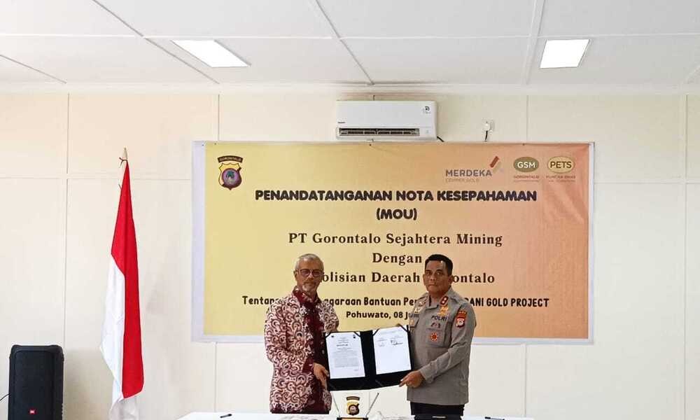 Acara penandatanganan Mou tersebut dihadiri Bupati Pohuwato Saipul Mbuinga, Kapolres Pohuwato AKBP Joko Sulistiono dan Direktur Utama PT Gorontalo Sejahtera Mining (GSM) Boyke Poerbaya Abidin dan jajaran Polda Gorontalo.