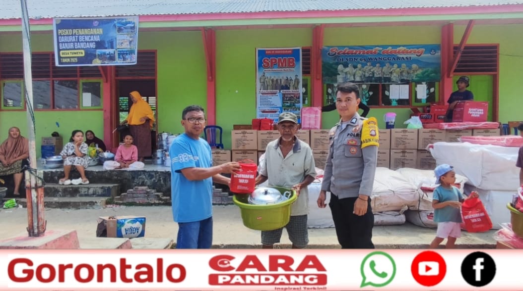 POHUWATO, CARAPANDANG - Bantuan sosial untuk warga terdampak bencana banjir bandang di Desa Tuweya, Kecamatan Wanggarasi, Kabupaten Pohuwato, mulai disalurkan pada Minggu (29/6/2025) siang.