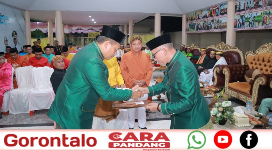 POHUWATO, CARAPANDANG - Kapolres Pohuwato selaku Khutbah menerima secara adat penyerahan naskah khutbah di rumah dinas bupati Pohuwato secara adat tonggeyamo oleh para pemangku adat yang di serahkan oleh wakil Bupati Pohuwato.