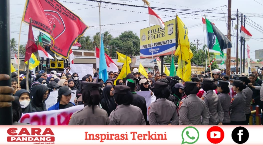 POHUWATO, CARAPANDANG - Kepala Kepolisian Resor (Kapolres) Pohuwato, AKBP Busroni, menyampaikan sikap tegas sekaligus menenangkan massa aksi yang menggelar demonstrasi di depan Mapolres Pohuwato, Senin (1/9/2025).