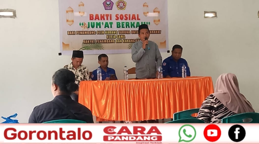 POHUWATO, CARAPANDANG - Karang Taruna Kabupaten Pohuwato bersama rakyat penambang menggelar bakti sosial bertajuk Jumat Berkah di Kantor Desa Bulangita, Kecamatan Marisa, Jum'at (07/02/2025) sore.