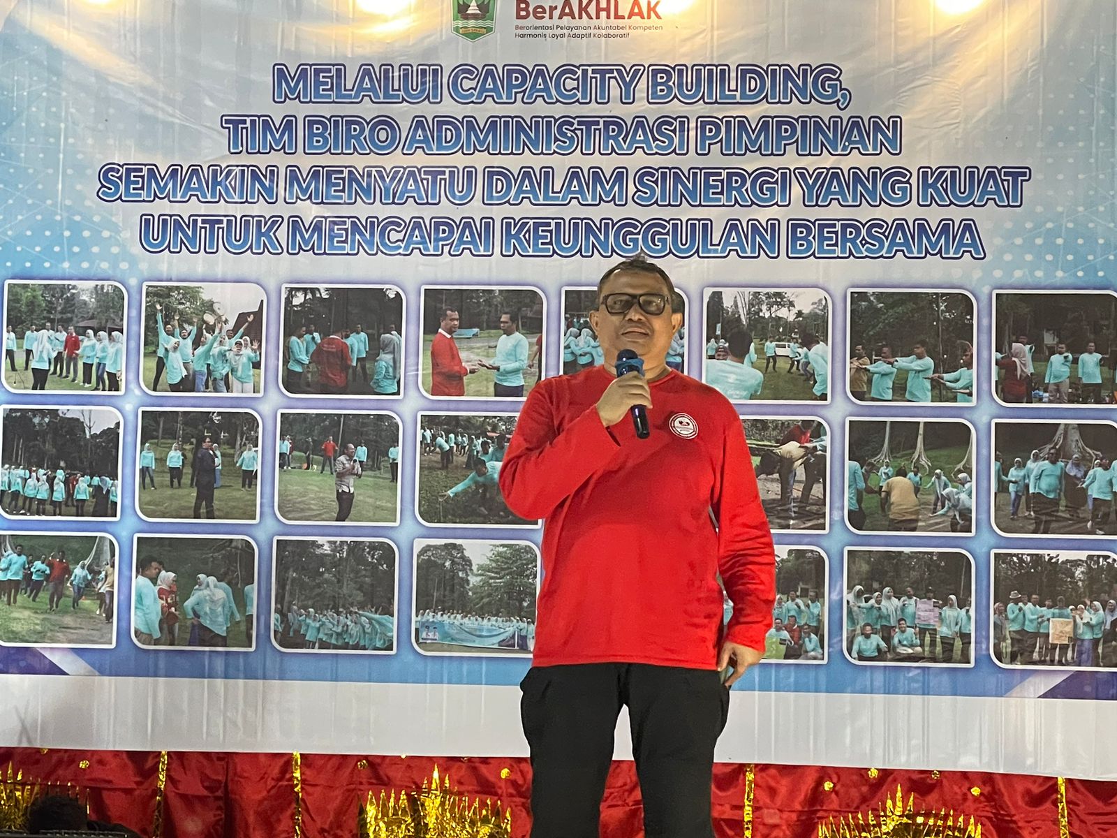 SUMBAR, CARAPANDANG - Kepala Biro Adpim Sumbar, Mursalim menginstruksikan seluruh jajarannya untuk mengambil makna dari seluruh rangkaian kegiatan yang telah dilaksanakan selama Capacity Building. Ia menegaskan, peserta jangan hanya fokus pada sisi suka rianya semata.