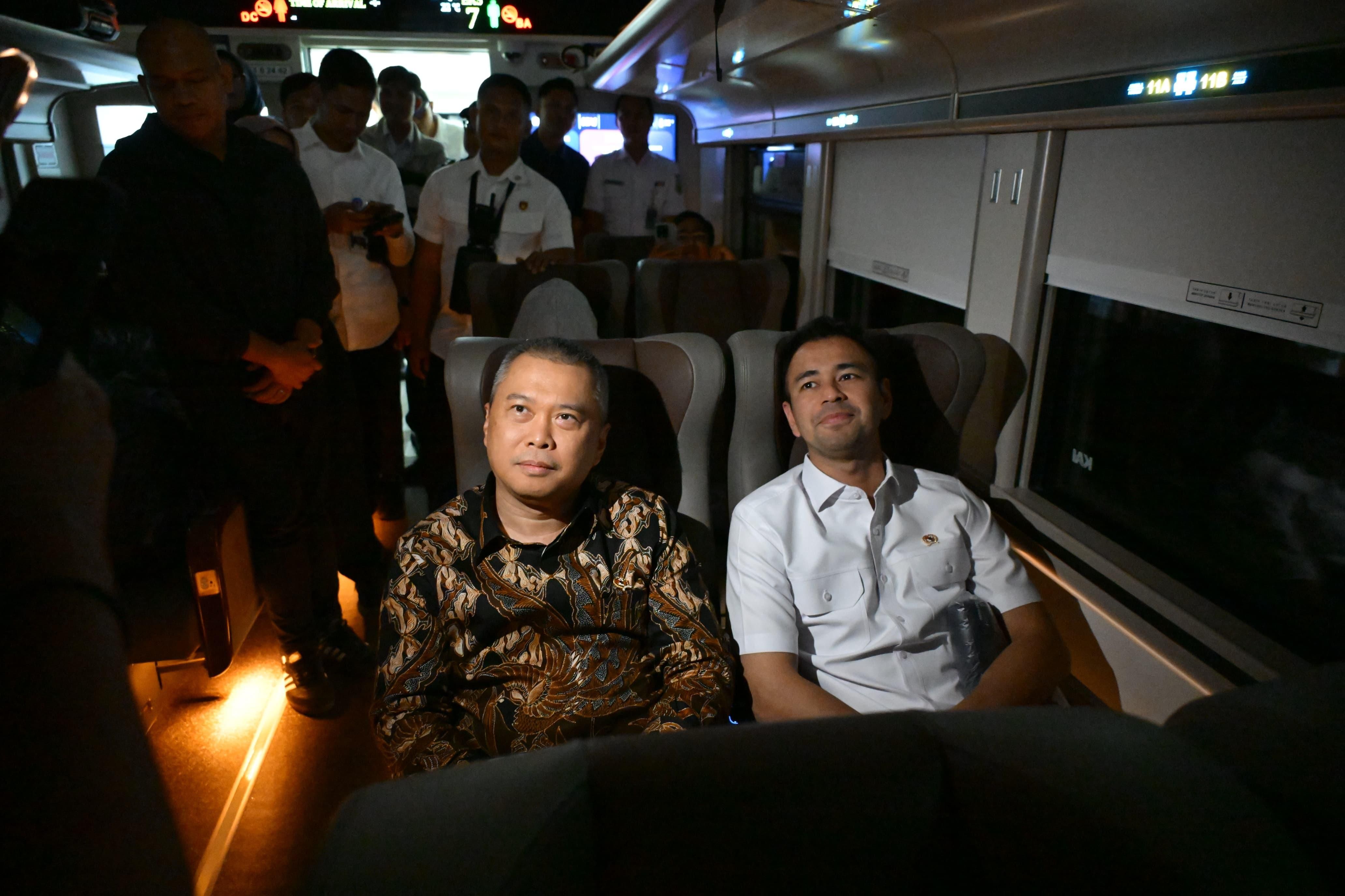 Dudy bersama Menteri BUMN Erick Thohir mengikuti uji coba kereta tersebut. Utusan Presiden Bidang Pembinaan Generasi Muda dan Pekerja Seni, Raffi Ahmad juga hadir.