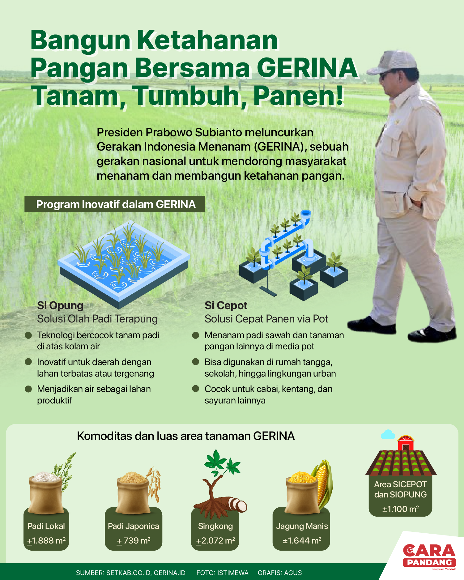 CARAPANDANG - Dengan semangat kolektif dan gotong royong, Program Gerina diharapkan dapat menciptakan dampak jangka panjang bagi ketahanan pangan nasional.