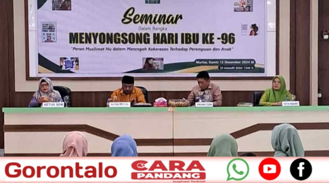 POHUWATO, CARAPANDANG - Ketua Gabungan Organisasi Wanita (GOW) Kabupaten Pohuwato, Suharsi Igirisa, diwakili Sekretaris, Mirhan Bumulo, M.Pd, membuka kegiatan seminar dalam rangka menyongsong Hari Ibu ke-96 di aula Kemenag Pohuwato yang turut dihadiri Kakan Kemenag Pohuwato, Rais Abaidata dan pemateri Plt. Kepala DP3AP2KB, Rustam Meleng, Kamis, (12/12/2024).
