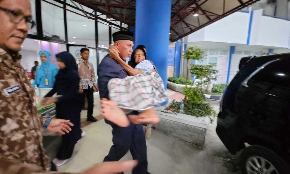 SUMBAR, CARAPANDANG.COM - Setelah beberapa hari menjalani perawatan di RSUP Dr. M Djamil Padang, Nurmi (81), ibunda dari Gubernur Sumbar, Mahyeldi Ansharullah, akhirnya dibolehkan pulang, Kamis (16/11/2023). Tampak Gubernur menggendong sendiri sang ibunda ke dalam mobil, saat menjemput dan dibawa pulang ke Gubernuran.