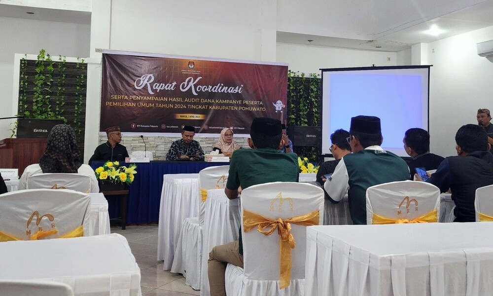 POHUWATO, CARAPANDANG - Komisi Pemilihan Umun Kabupaten Pohuwato menggelar Rapat Koordinasi yang penting dalam menjaga transparansi dan akuntabilitas dalam proses demokrasi. Kegiatan yang berlangsung di Aula Marisa Beach Resort (MBR) pada Rabu, (03/04/2024).