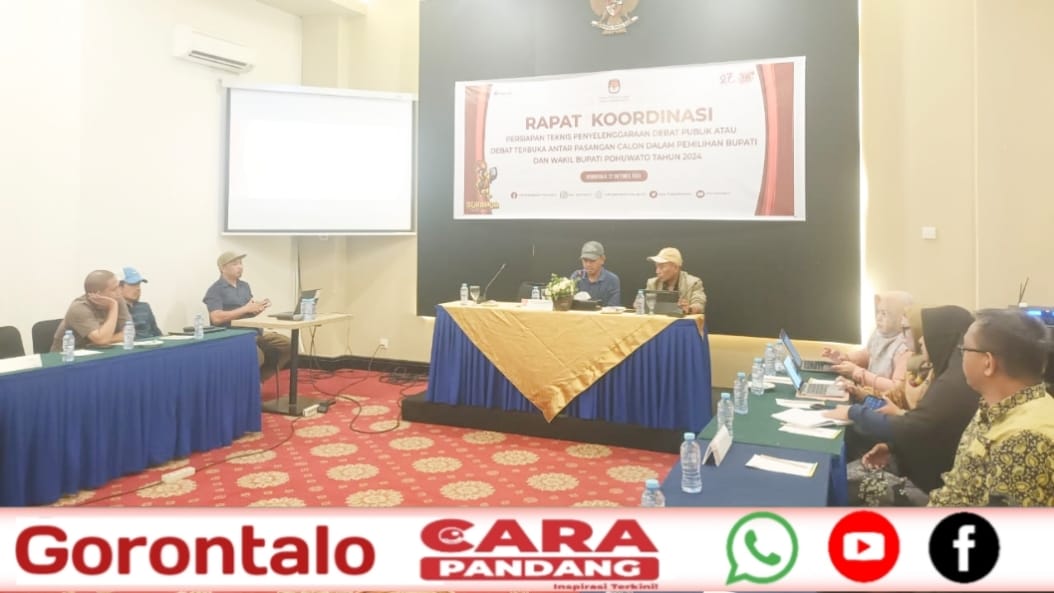 Persiapan tersebut dibahas dalam Rapat Koordinasi Persiapan Teknis Penyelenggaraan Debat Publik atau Debat Terbuka Antar Pasangan Calon dalam Pemilihan Bupati dan Wakil Bupati Pohuwato Tahun 2024