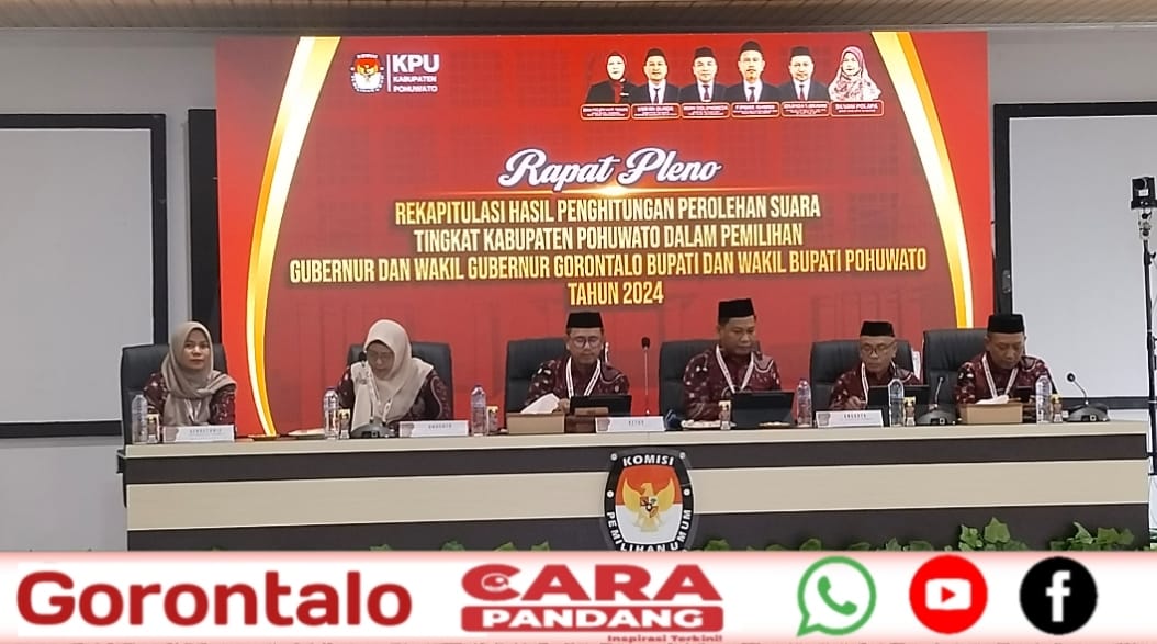 POHUWATO, CARAPANDANG - Rekapitulasi hasil perhitungan suara untuk Pemilihan Gubernur-Wakil Gubernur dan Pemilihan Bupati-Wakil Bupati Pohuwato 2024 dimulai hari ini, Selasa (3/12), di Sekretariat KPU Pohuwato.