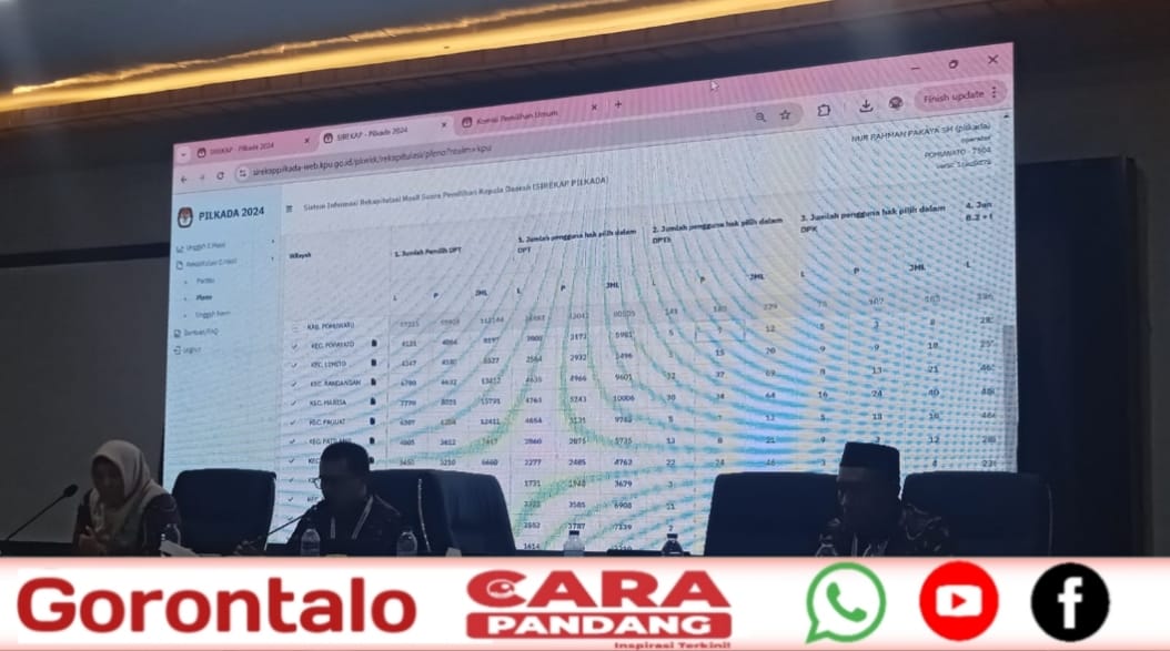 CARAPANDANG - Komisi Pemilihan Umum (KPU) Kabupaten Pohuwato, mulai rekapitulasi hasil perhitungan suara, Pemilihan Kepala Daerah (Pilkada) Gubernur - Wakil Gubernur serta Bupati - Wakil Bupati Pohuwato 2024.