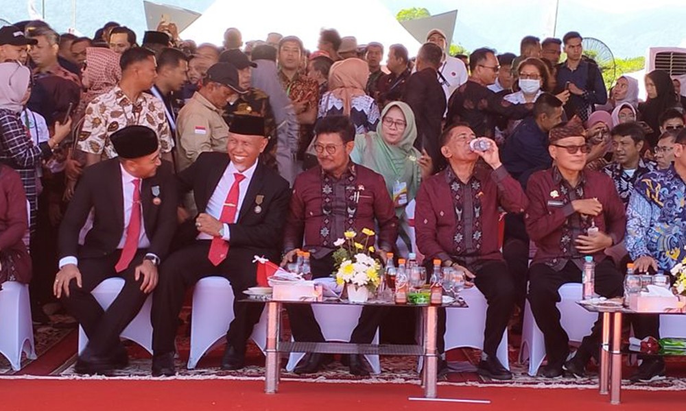 CARAPANDANG - Kementerian Pertanian (Kementan) terus berupaya mencanangkan seluruh kabupaten di Tanah Air untuk mengolah atau menggarap 1.000 hektare (Ha) lahan guna menguatkan ketahanan dan kemandirian pangan nasional. "Di sinilah pentingnya kolaborasi sebagai penguat mewujudkan lumbung pangan dunia," kata Menteri Pertanian Syahrul Yasin Limpo di Padang, Sabtu Hal tersebut disampaikan Mentan Syahrul Yasin Limpo dalam rangka Pekan Nasional Petani dan Nelayan Indonesia (Penas Tani) XVI yang berlangsung 10 - 15 Juni 2023 di Lanud Sutan Sjahrir Kota Padang, Sumatera Barat (Sumbar). Menurut Mentan Syahrul Yasin Limpo, pangan adalah sektor paling strategis karena berkaitan langsung dengan aspek dasar kebutuhan masyarakat. Tidak hanya itu, pangan juga menjadi tumpuan terbukanya lapangan kerja serta menguatkan ekonomi Indonesia.