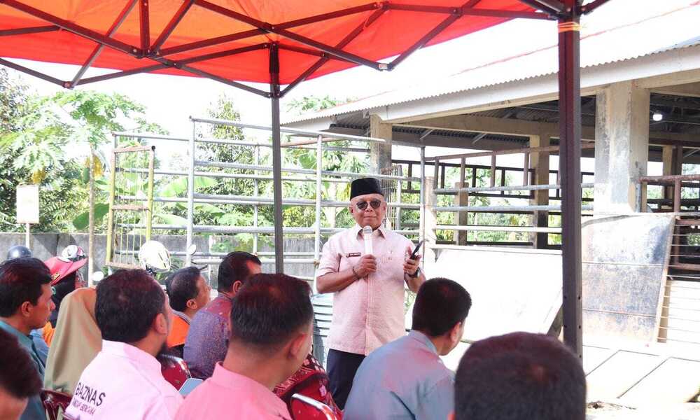 AGAM, CARAPANDANG - Bupati Agam yang diwakili Sekretaris Daerah Kabupaten Agam, Drs. H. Edi Busti, M.Si., memberikan apresiasi atas acara pemotongan hewan kurban yang diselenggarakan oleh Badan Amil Zakat Nasional (Baznas) Kabupaten Agam.