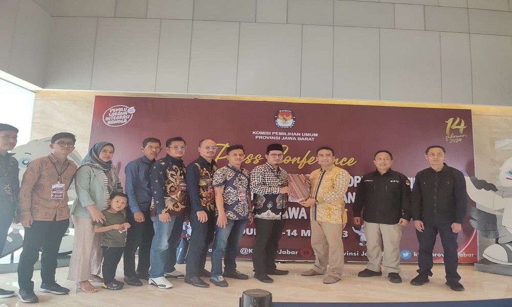 Jajang yang diantar oleh para pendukungnya diterima langsung oleh jajaran KPU Jawa Barat.