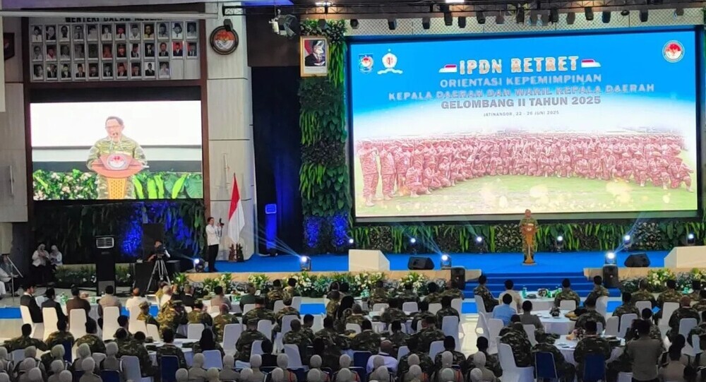 Menteri Dalam Negeri (Mendagri) Tito Karnavian resmi membuka retret kepala daerah gelombang kedua di kampus Institut Pendidikan Dalam Negeri (IPDN), Jatinangor, Kabupaten Sumedang, Jawa Barat, Senin.