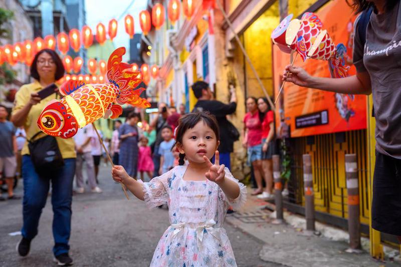 Orang-orang bersenang-senang dalam sebuah parade sembari membawa lampion berbentuk ikan di Kuala Lumpur, Malaysia, pada 18 Januari 2025. (Xinhua/Chong Voon Chung)