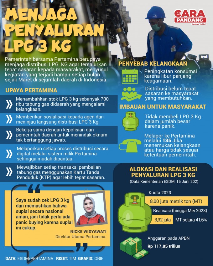Pemerintah bersama Pertamina berupaya menjaga distribusi LPG  KG agar tersalurkan tepat sasaran kepada masyarakat