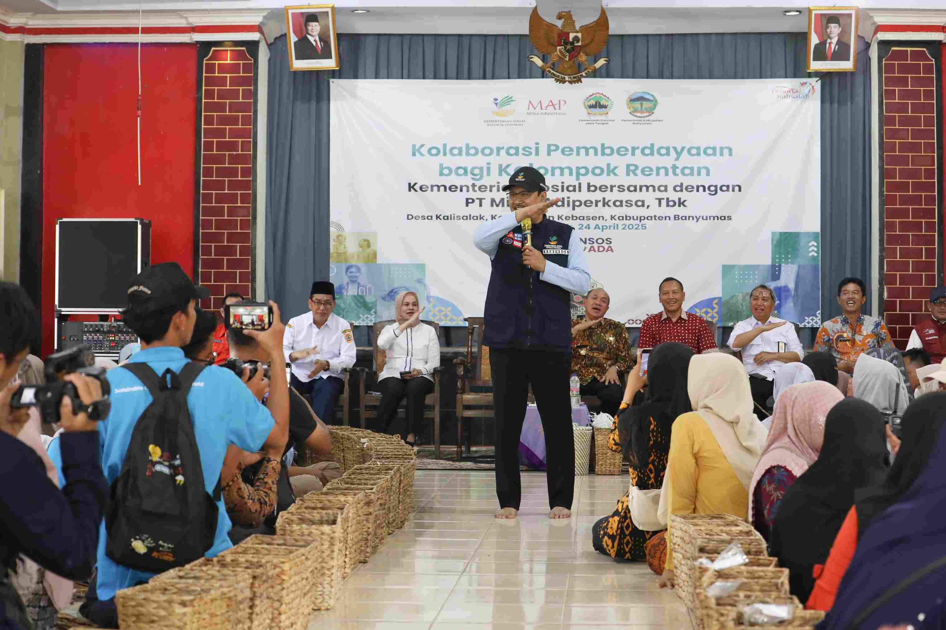 "Ini adalah model pemberdayaan hasil kerjasama Ditjen Pemberdayaan Sosial Kementerian Sosial bekerjasama dengan Out of Asia. Out of Asia yang mana ini adalah satu perusahaan eksportir yang mengirim hasil-hasil kerajinan Indonesia ke berbagai negara, baik itu Amerika atau Eropa," kata Gus Ipul di Balai Desa Kalisalak, Kamis (24/4/2025).